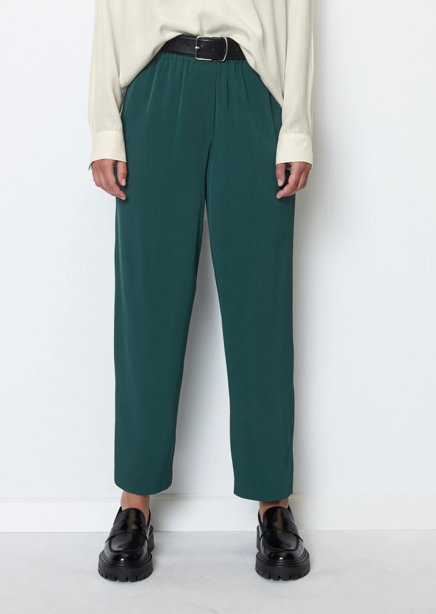 Marc O’Polo Barrel Slip-on Trousers With Elasticated Waistband Made From Flowing Viscose-mix Twill
