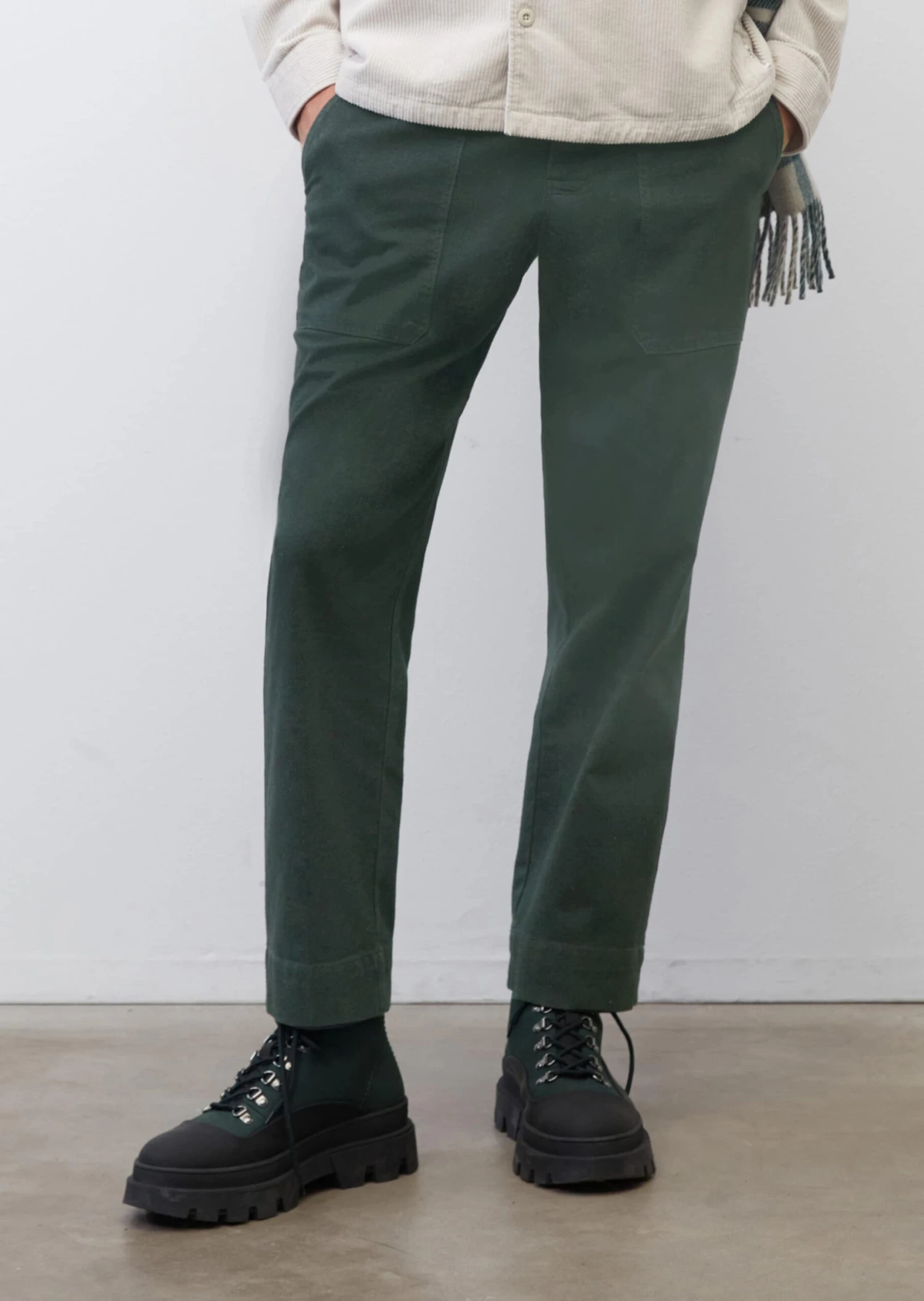 Robust & masculine, the casual BELSBO WORKER chinos come in a laid-back relaxed fit with a tapered leg in a cropped length. In comfortable stretch twill fabric made of pure organic cotton with added elastane for a comfortable fit. Classic waistband, reinforced on the inside, side straps plus front fly with metal logo button and zip. Workwear style: distinctive patch pockets on the front and button-through pockets on the back.