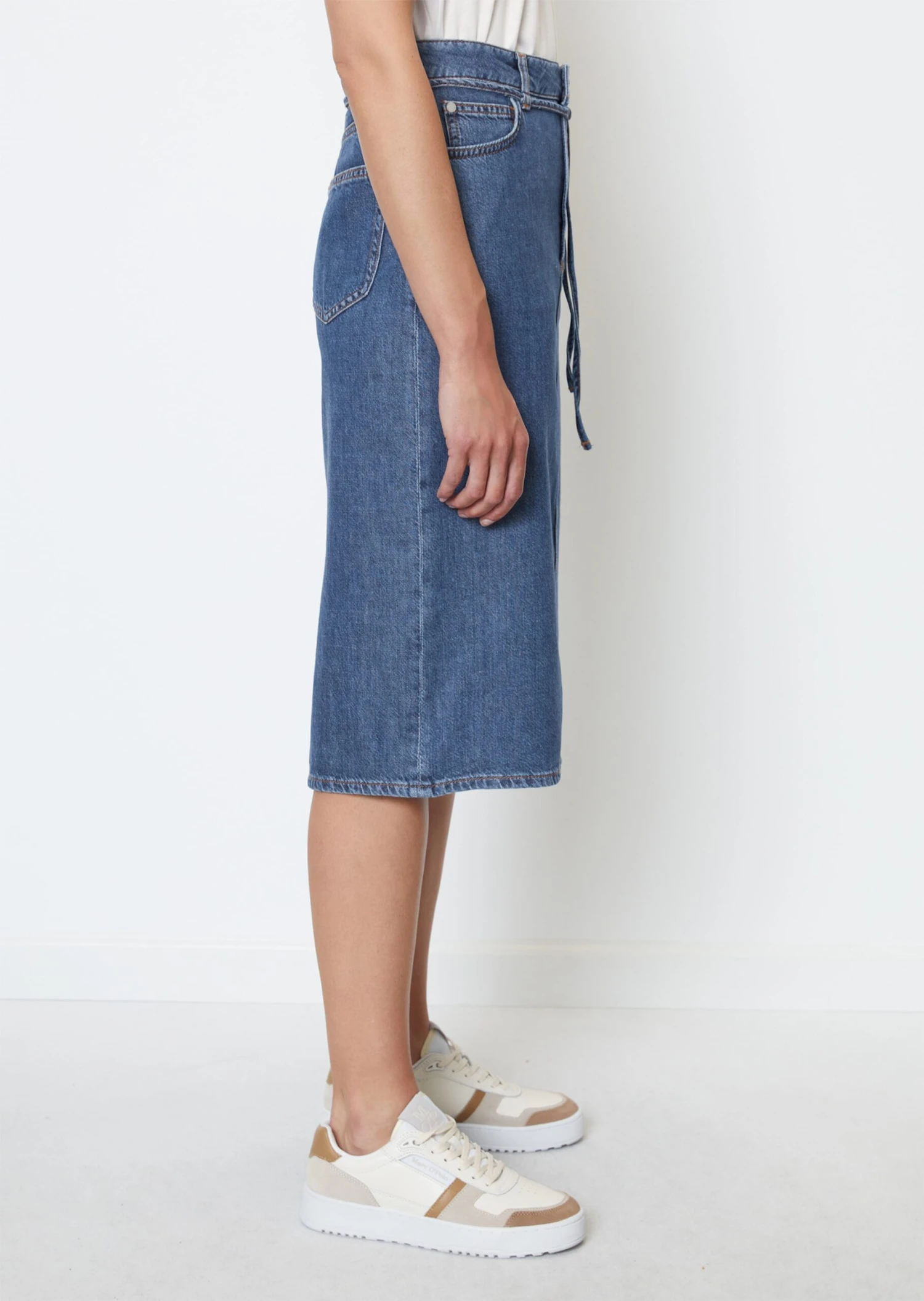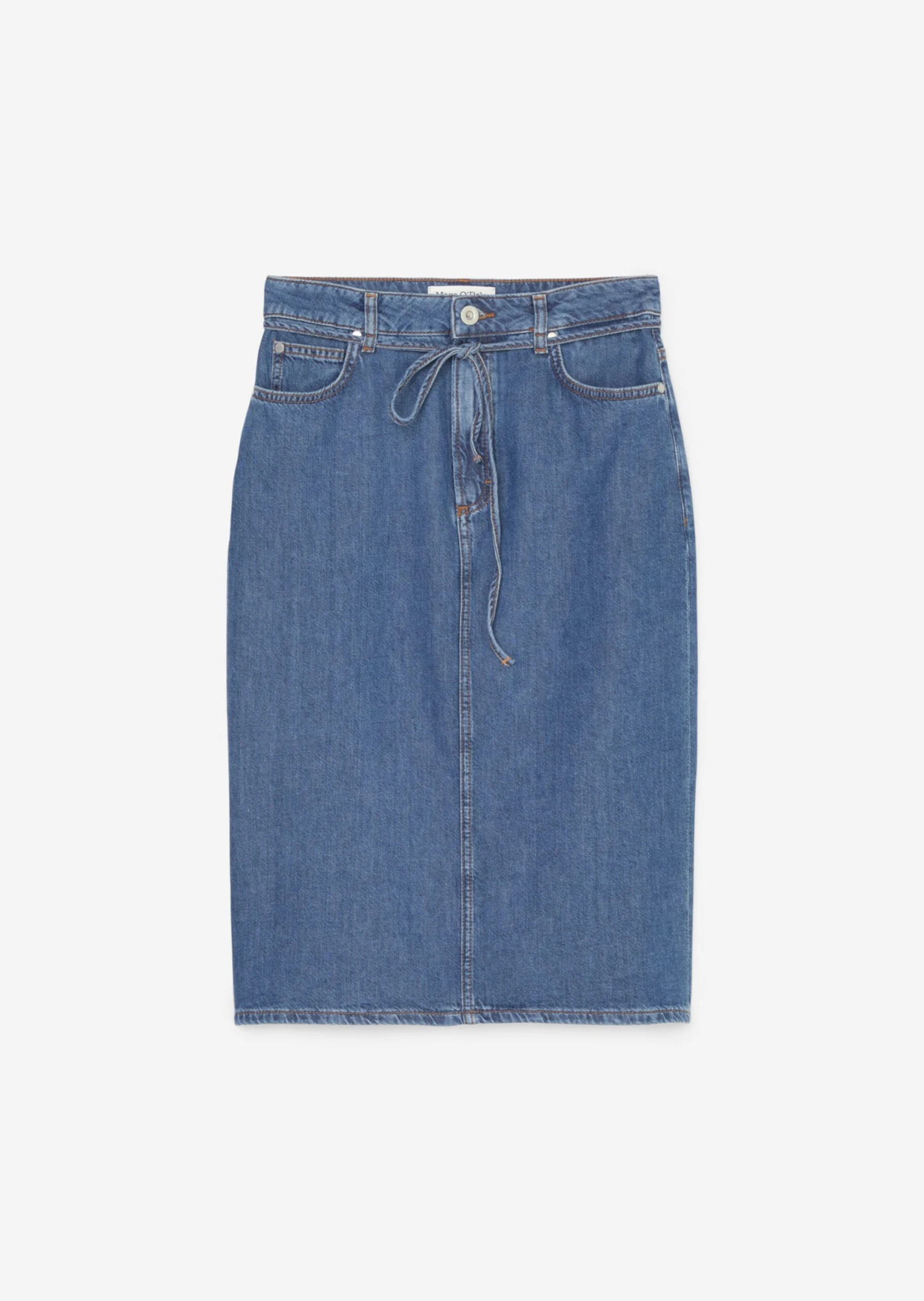 Marc O’Polo Denim Midi Skirt With Waist Belt In An Organic Cotton/lyocell Blend