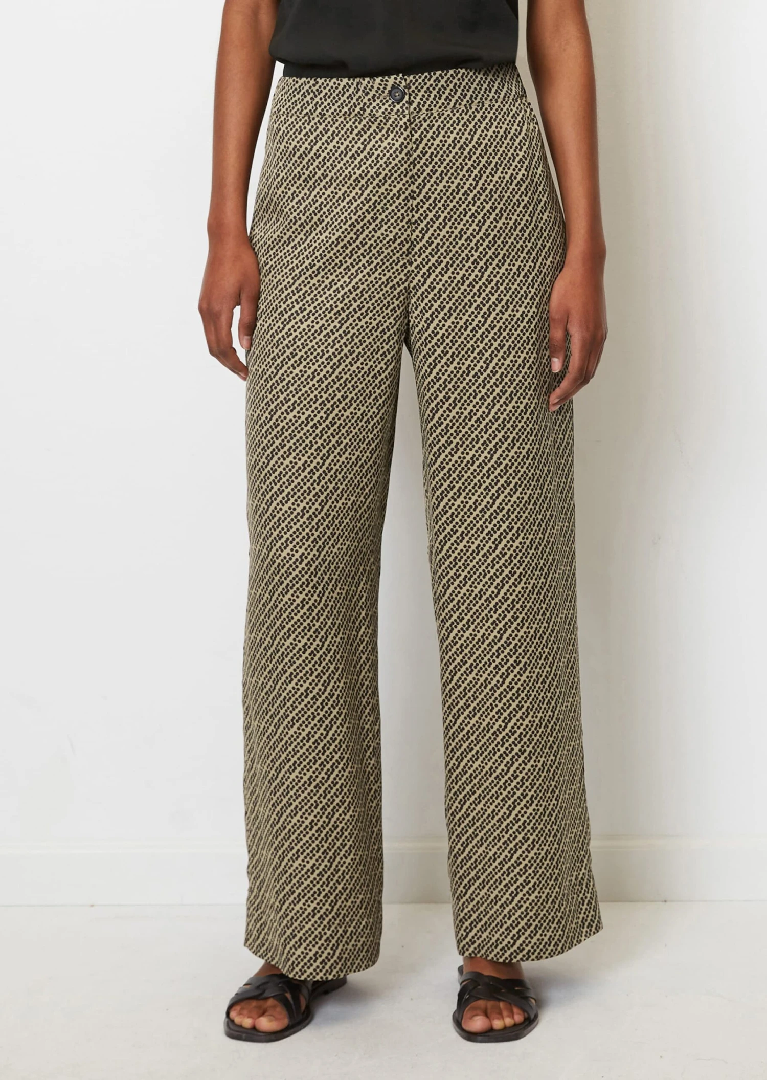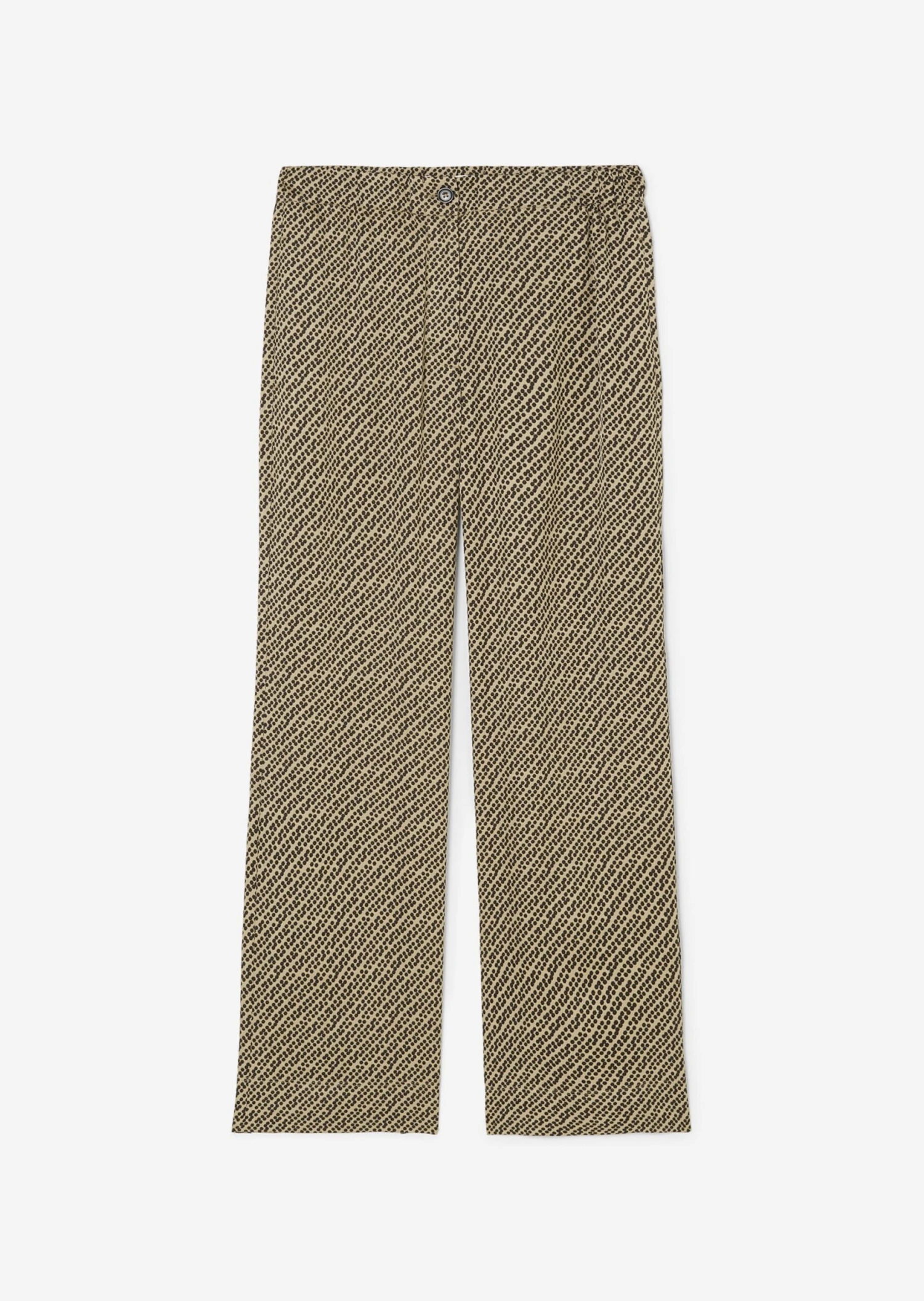 We love wearing wide and flowing trousers this season. All you need is the right addition to create the perfect silhouette – a slim-fitting top. These trousers feature an elegant pattern on pure, soft viscose twill as well as a comfortable, elasticated waistband and a classic button and zip fastener. The design also offers two practical in-seam slit pockets on the sides and one patch pocket on the back. Styling tip: pair them with the matching, open blouse as a cover up.