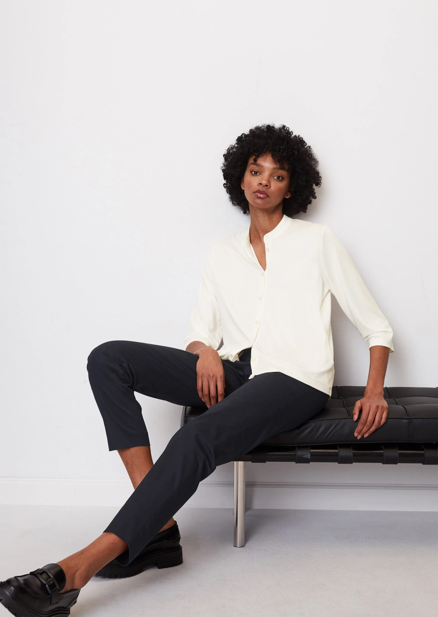 This soft jersey blouse made of high-quality, stretchy blended viscose is comfy, feminine and the perfect choice for fashion-conscious women. The piece comes in a comfortable loose fit with a classic band collar, straight mid-length sleeves and a regular hemline. Combine with skinny jeans and trainers for a smart casual look.
