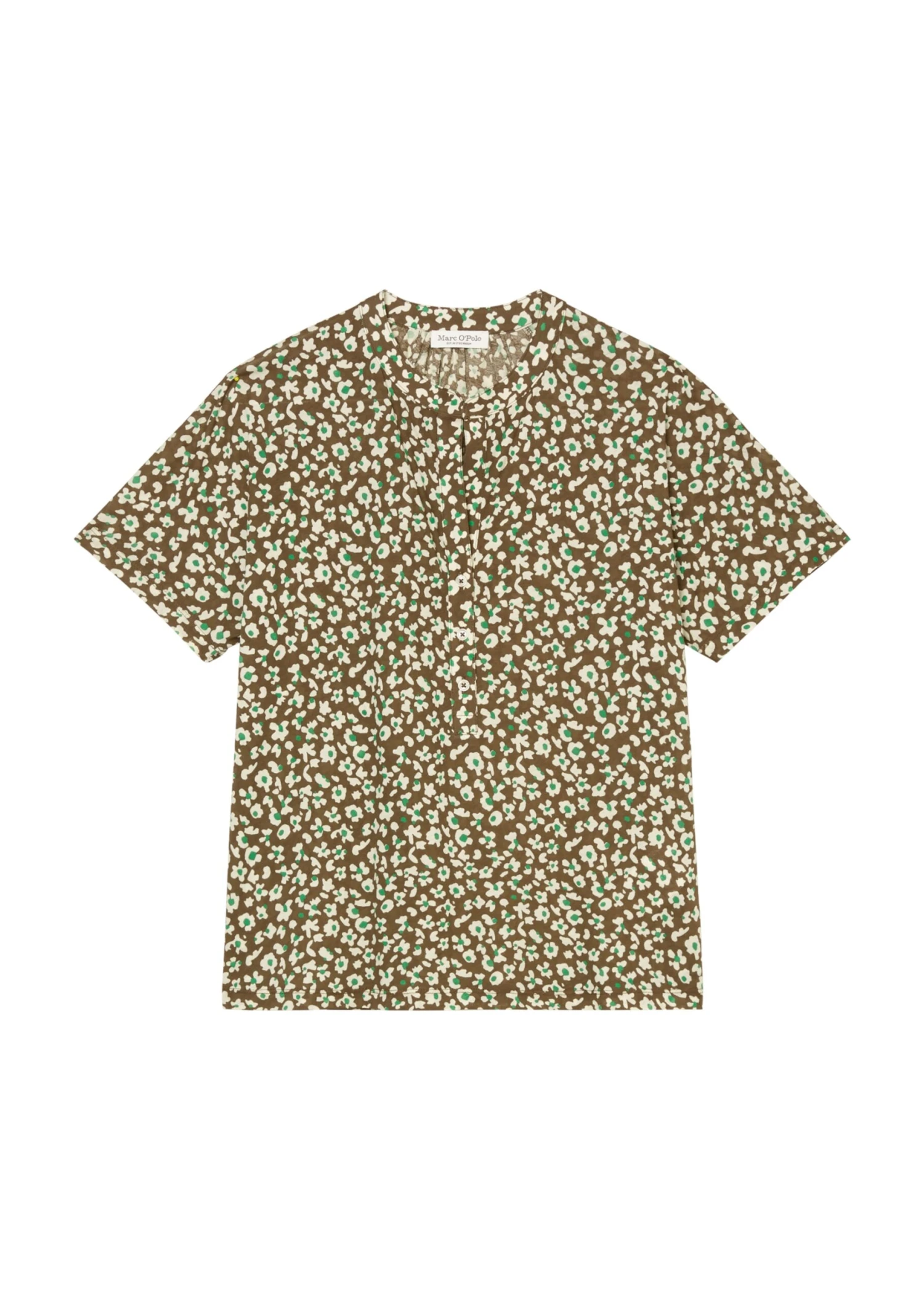Hot off the press! Loose fit jersey blouse with all-over print. Made of ultra-lightweight and very soft organic cotton jersey fabric with a notch neckline detail, a band collar, cut-on raglan sleeves and a slightly rounded hemline. Eye-catcher: the gathered collar section on the back.