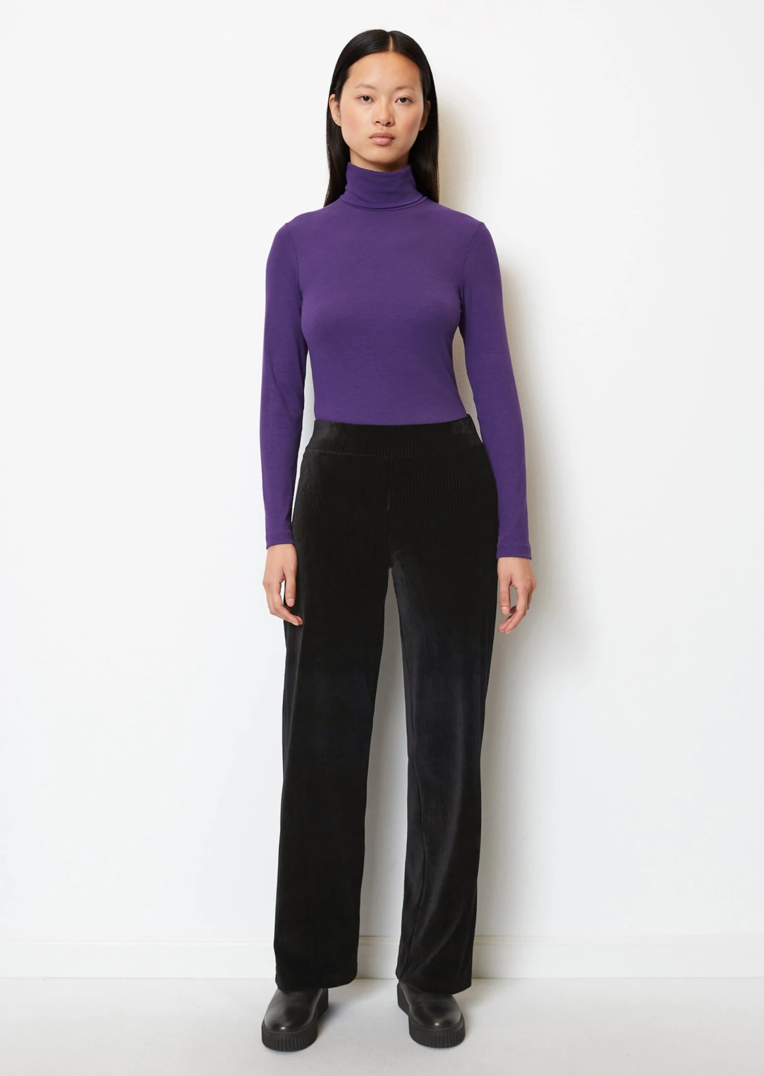 Is this season’s most elegant slip-on pants trend: the straight-cut model made of high-quality corduroy jersey. The trousers have a comfortable, elastic waistband and come completely without closure. The material: a stretchy mix of modal, cotton and polyester. The uncomplicated pants harmonize with simple basics as well as noble blouses and luxurious knitted sweaters. Combine with the matching blazer for a hip ensemble look.