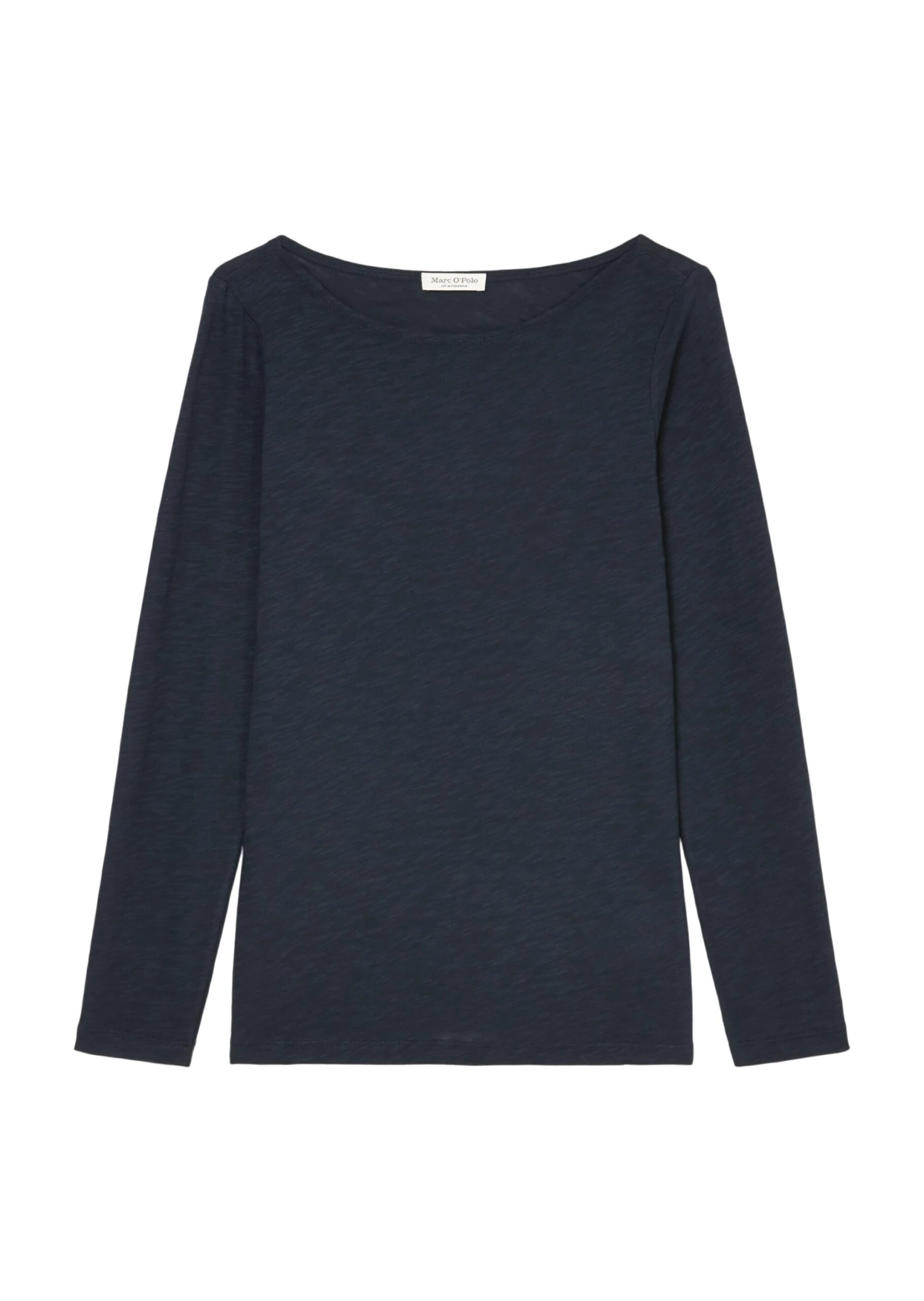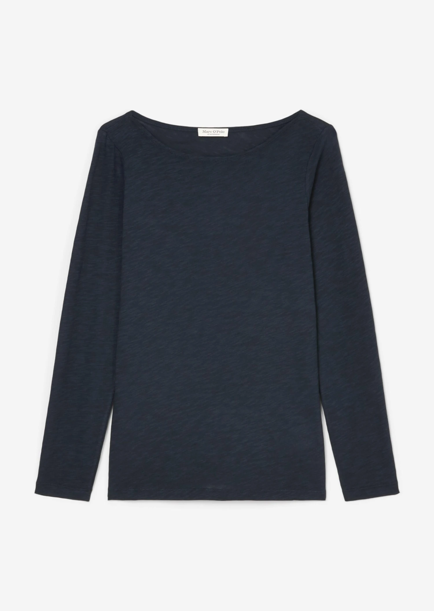 Casual long-sleeved top made from pure organic cotton in a slightly transparent slub jersey fabric. Perfect for layering, for wearing underneath something or simply as a solo piece. Boat neck, slender long sleeves and small logo print on hem. Ultra-soft, pleasant fabric that is very comfortable to wear.