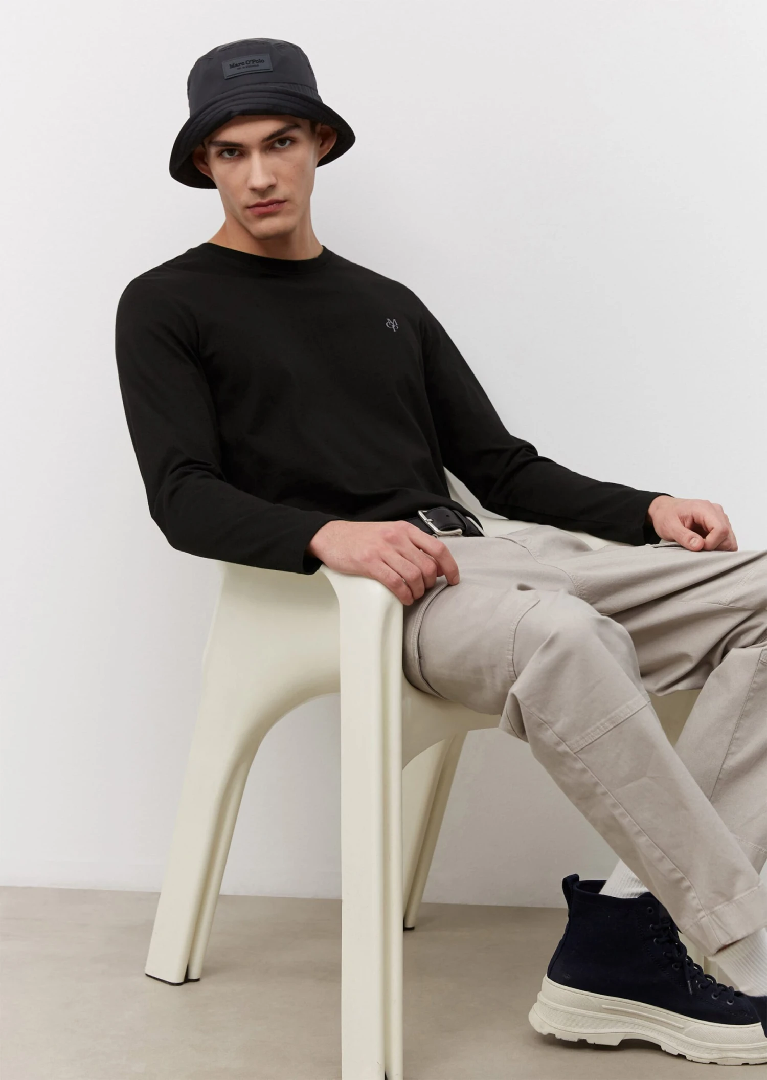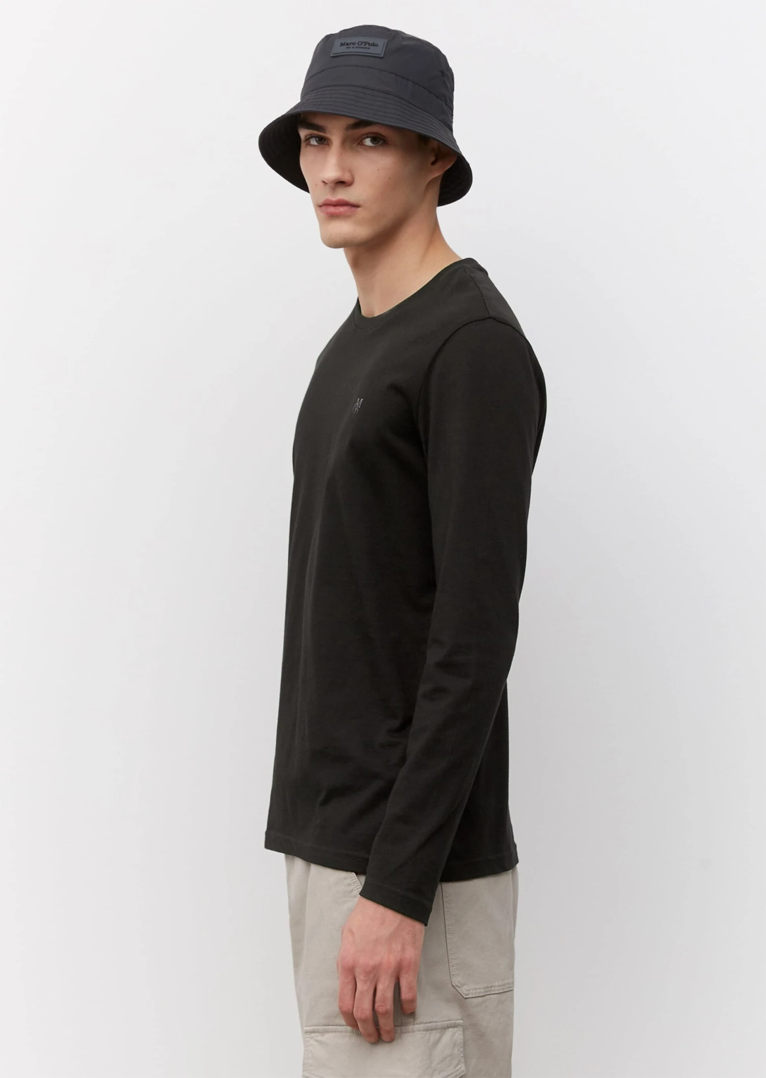 Timeless basic in premium fabric: the long-sleeve top is made from organic cotton and features a slim cut. Plain, easy to match design with fine detail: a small printed logo on the chest.