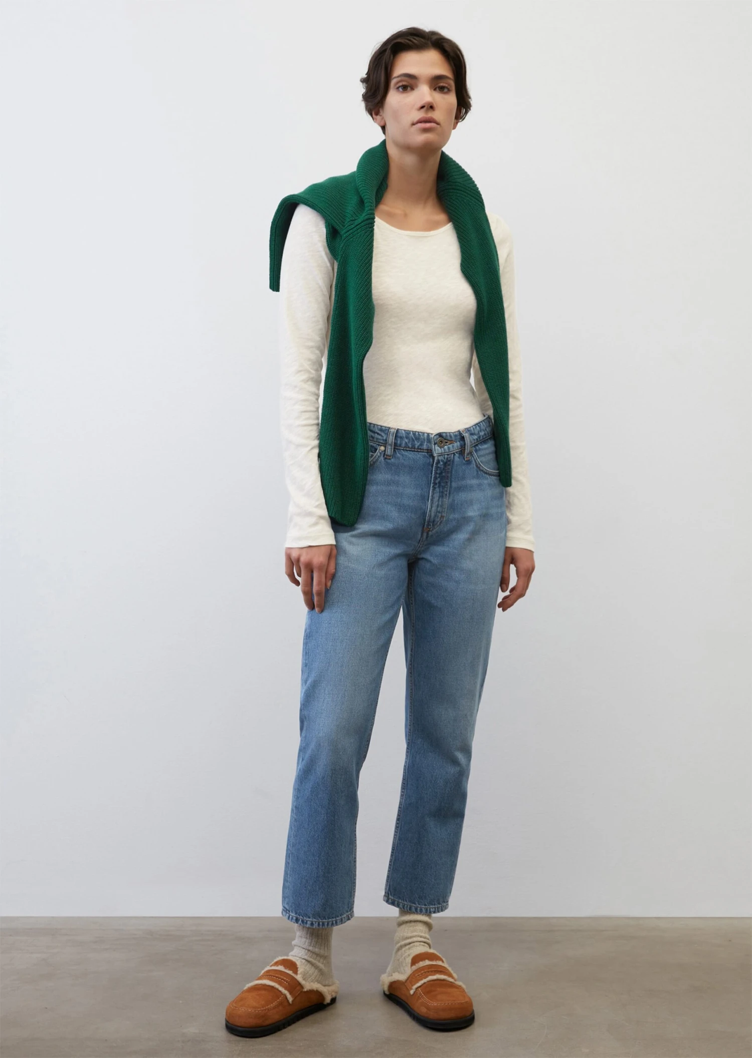 Our classic: casual, timeless long sleeve top made of pure, very soft organic cotton in lightweight, semi-sheer slub jersey fabric. Perfect for layering, wearing as a base layer or simply as a confident solo piece. This long-sleeved top comes with a feminine bateau neckline, long narrow sleeves and a straight hem. With a logo print at the hem. The fit: regular, comfortable H-line design.