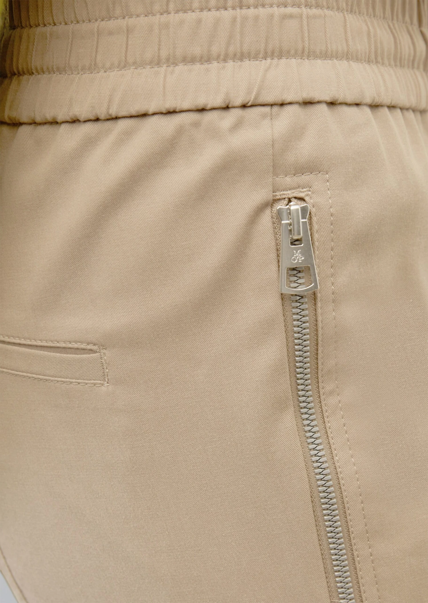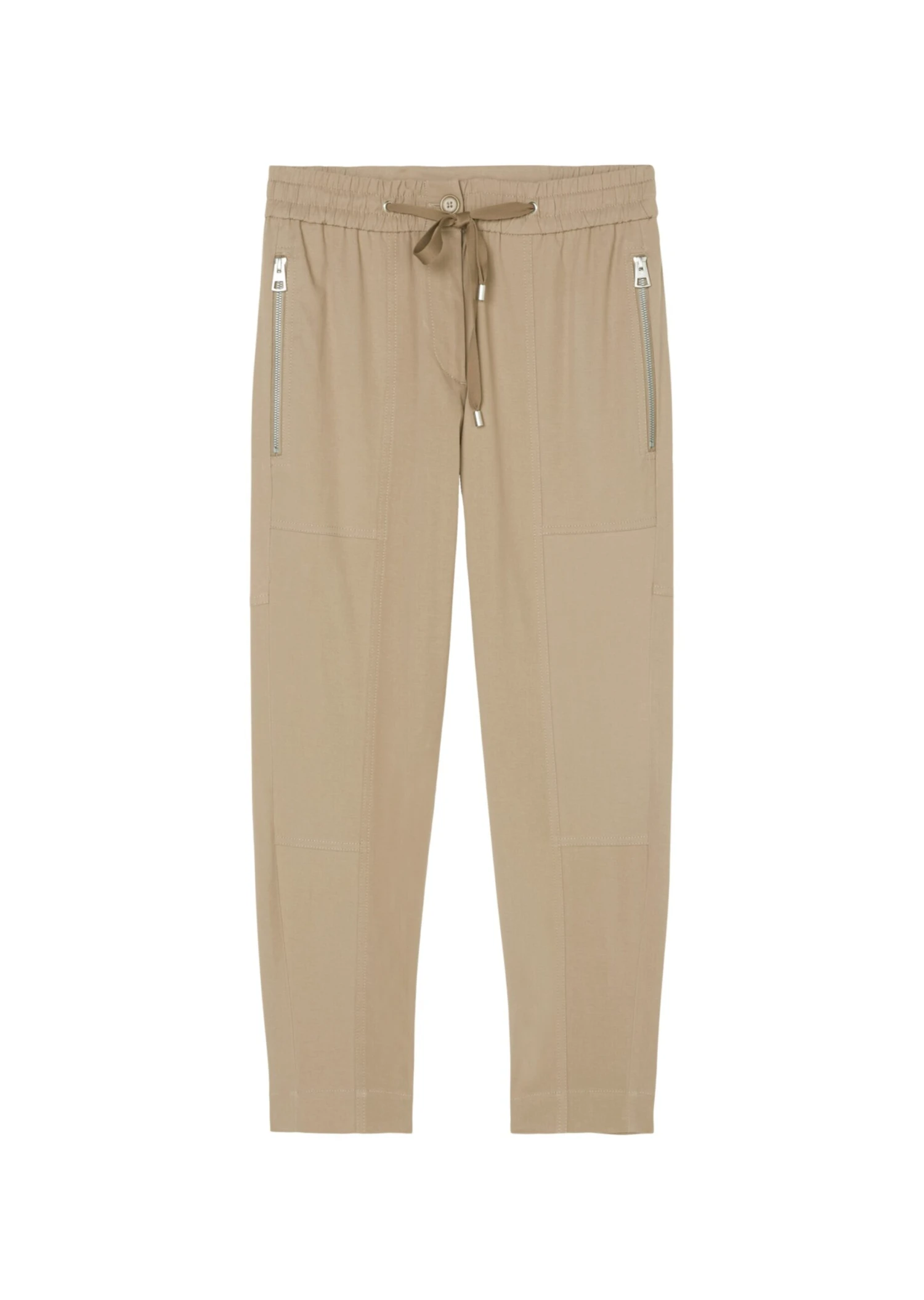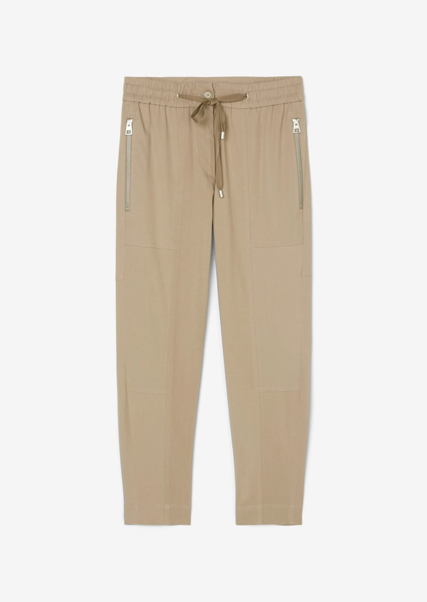Travel trousers with a twist – casual and even elegant if you style them right. These relaxed trousers come with a comfy, elasticated drawstring waistband with ties and an additional zip and button. They are made from a soft, robust and slightly stretchy lyocell/cotton blend and feature two striking zip pockets and a tapered leg with decorative dividing seams. There is a piped pocket on the back.