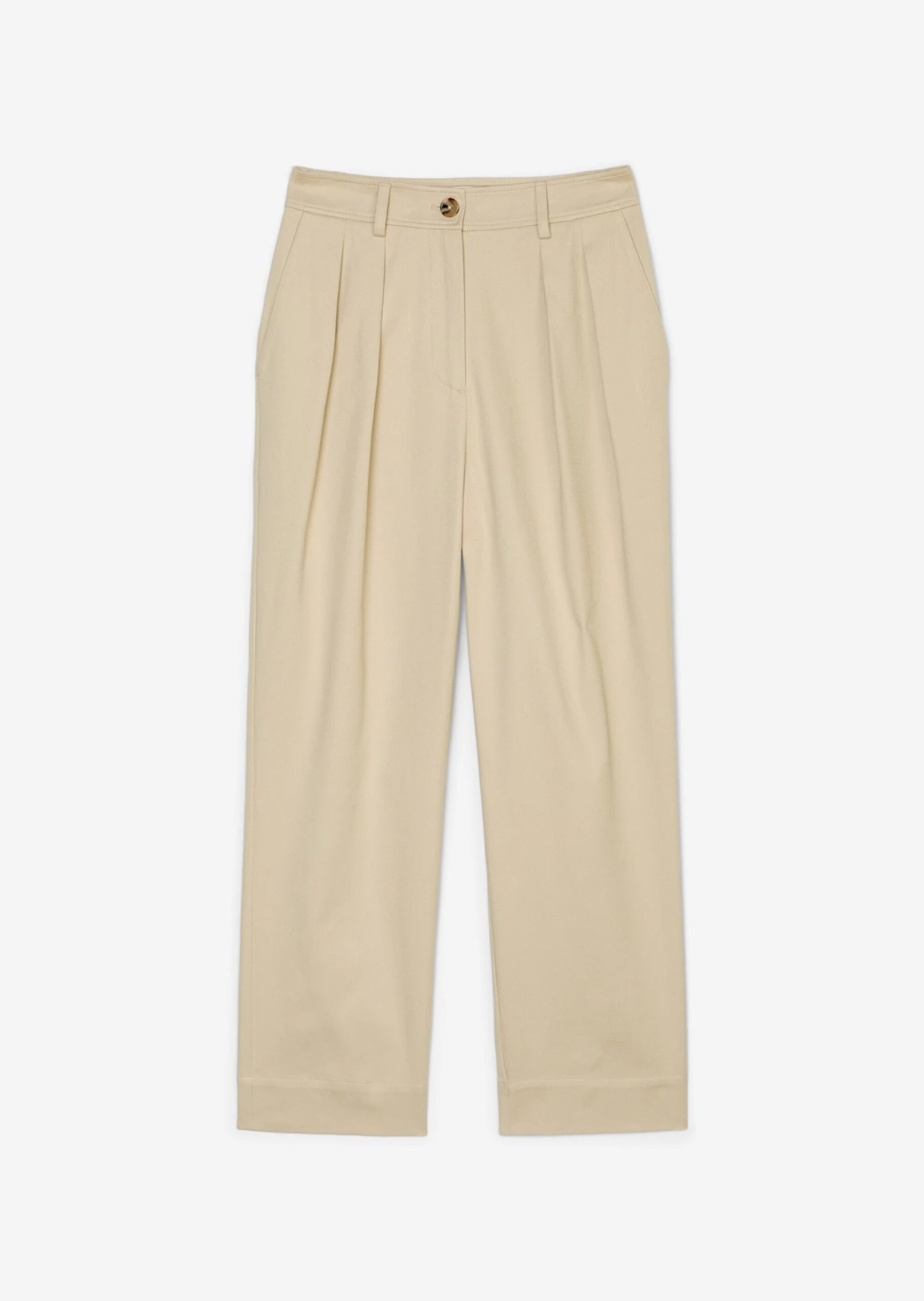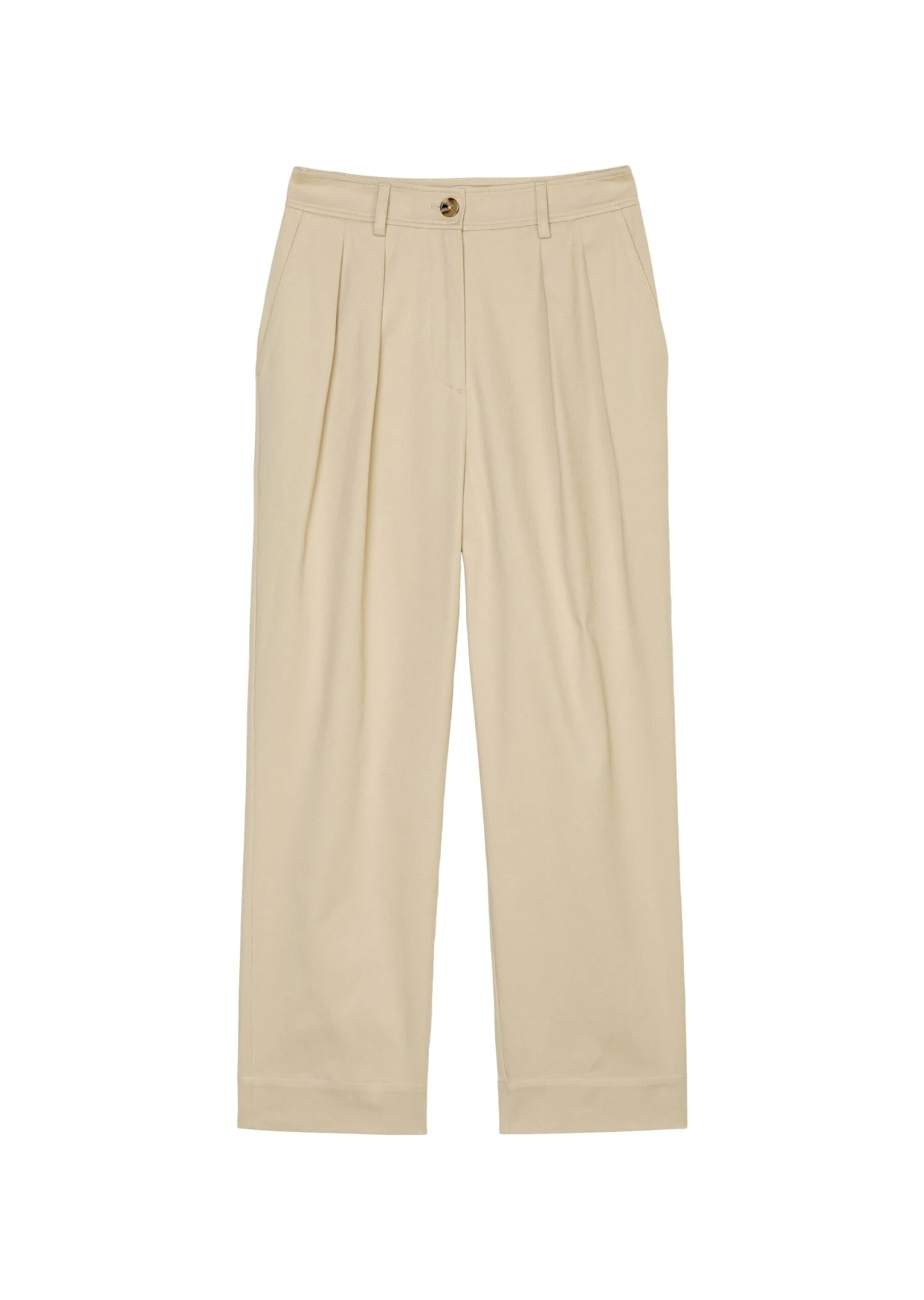 Marc O’Polo x CHEVIGNON. Iconic, limited, authentic: Nordic naturalness meets French free spirit! Fashion trend with volume and freedom: the balloon pants. The model has a high waist and is cut narrower at the ankles – in between the pants are super wide, which creates the special look. Styling tip: choose blouses, knitted sweaters and sweatshirts in a crop fit to show off the casual pants to their best advantage. With classic waistband workmanship, slanted welt pockets at the front, deep pleats and buttonable flap pockets on the buttocks.
