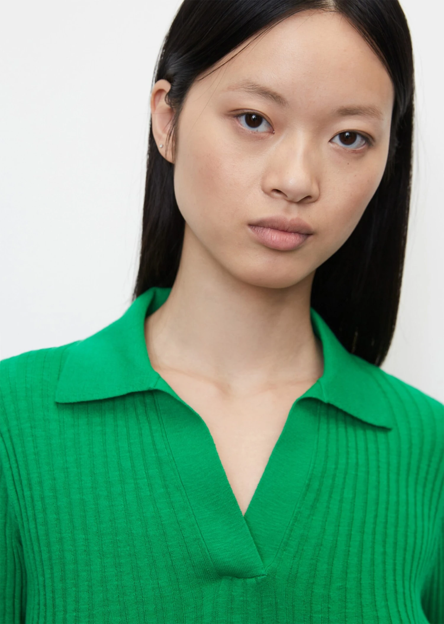 Marc O’Polo Rib Knit Dress With A Polo Collar Made Of An Organic Cotton And Linen Blend