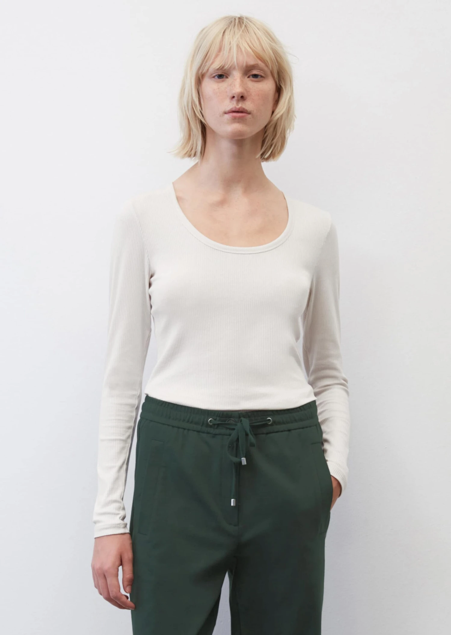 A casual everyday piece, this long sleeve top is made of soft ribbed jersey composed of sustainably produced organic cotton with added elastane. The design comes in a feminine straight fit with a deep round neckline, long slim-fitting sleeves and a straight hemline. The super soft texture feels amazing against the skin – the clean design makes this long sleeve top a perfect piece for styling with and layering under other separates.