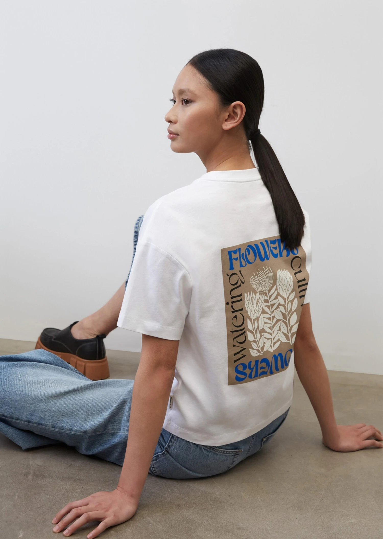 This crewneck T-shirt made of pure organic cotton single jersey comes in light, powdery tones with casual “Garden of Sweden” prints. The short sleeve T-shirt comes in a normal fit with a slightly cropped length. Feminine simplicity meets casual relaxed style.