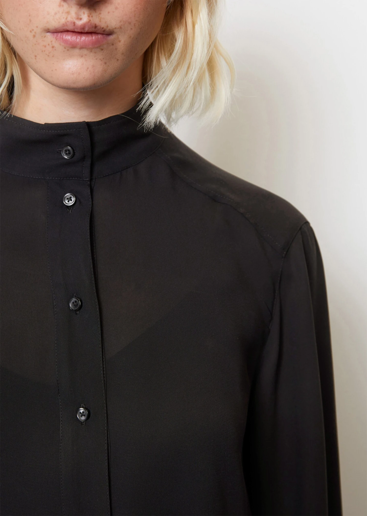 Trend dress: the short, loosely cut model convinces with an ingenious combination of cut and fabric quality. The casual all-rounder shows itself with subtle variations, which makes it look even more modern. It has a high stand-up collar, a half button placket, a shoulder yoke and a low-set, gathered skirt. The long, puffed sleeves with wide cuff ends provide an eye-catching feature. The fabric: a flowing, semi-transparent twill made of cupro-viscose mix. A separate undergarment with adjustable straps serves as lining.