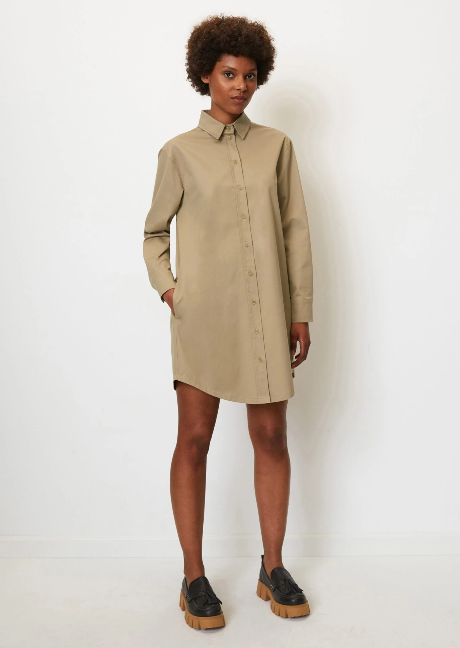 They work in every season and are perfect for days when you have to put your outfit together in a hurry: shirt dresses! They are the perfect mixture of comfortable and elegant, and can be worn either with casual trainers or a pair of chic loafers. Loose fit with a Kent collar, a shoulder yoke, slightly dropped shoulders, classic blouse sleeves and a rounded hemline. The two in-seam side slit pockets are very practical. The material: soft, stretchy organic cotton twill.