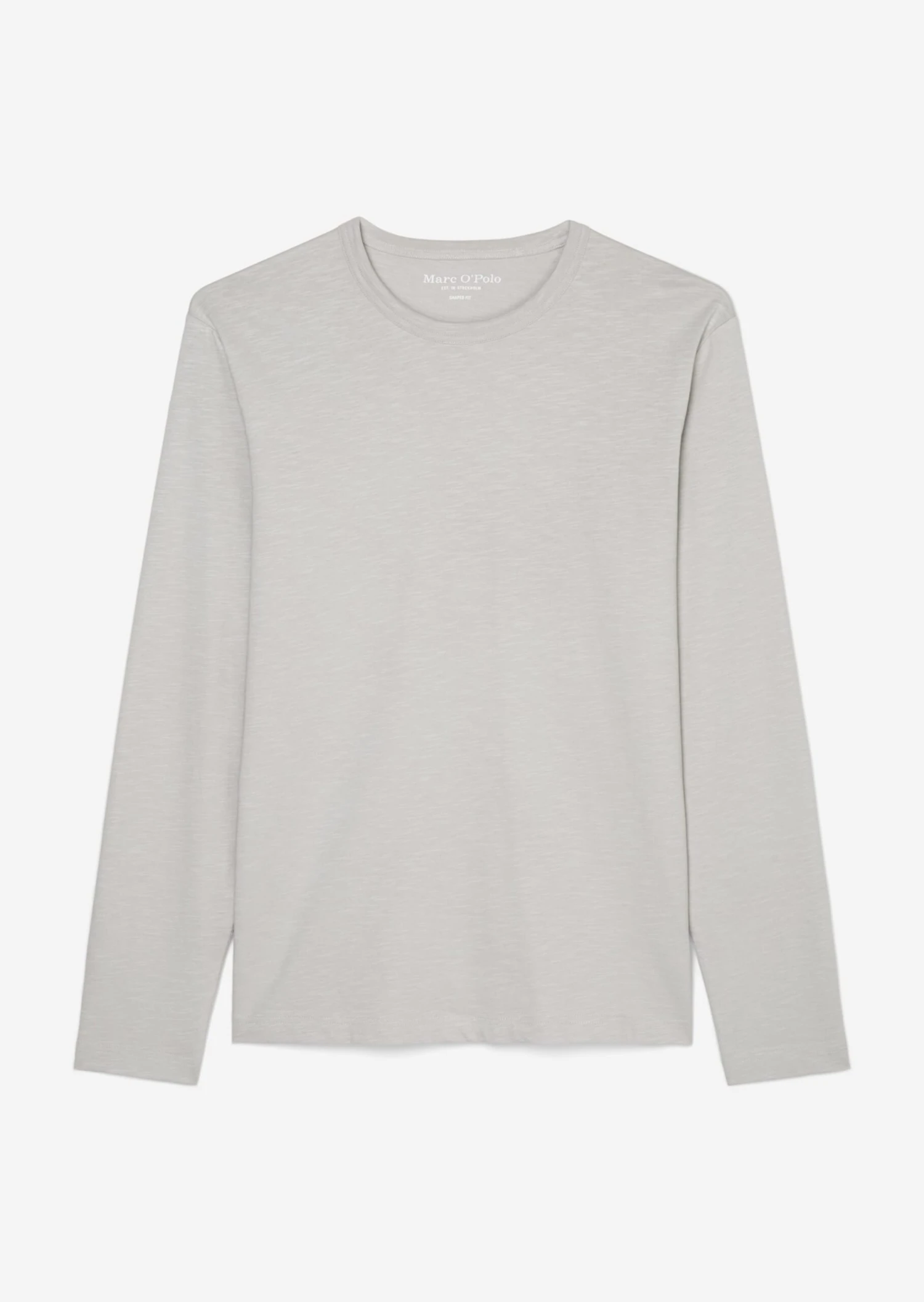 This high-quality long sleeve top is made of pure organic cotton and has a familiar slub jersey texture. It is perfect for layering and will enhance a casual look. This piece is made of pure, GOTS-certified organic cotton with a soft finish and has a double-layer round neckline, long sleeves and a straight hemline. It is tailored and comes in a masculine, shaped fit with a subtle label on the side seam.