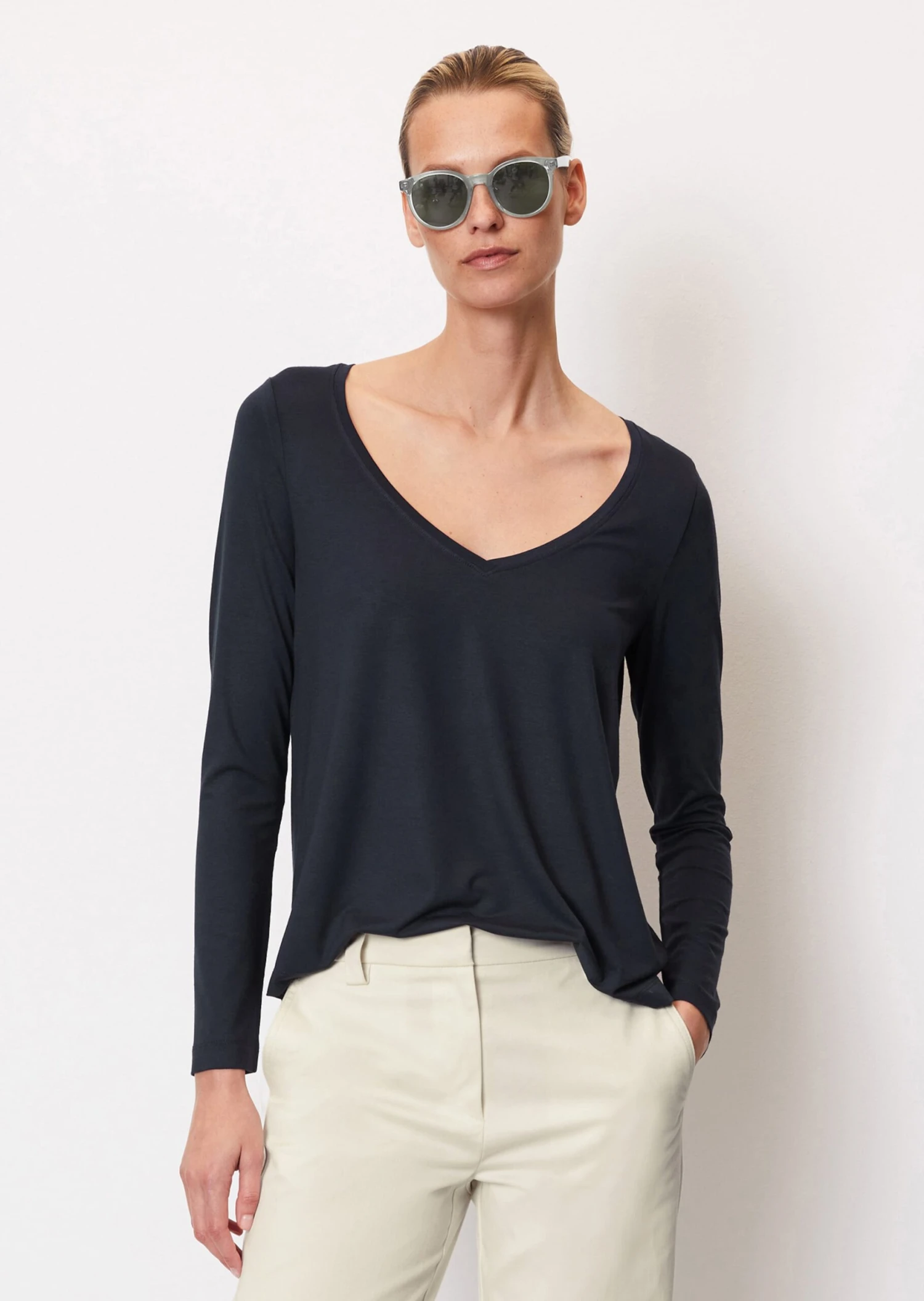 Marc O’Polo V-neck Long Sleeve Top In A Loose Fit From LENZING™ ECOVERO™